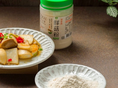 成份: 台灣巴西蘑菇、香菇、蠔菇、玉皇菇、增智菇、茶樹菇、猴頭菇、鮑魚菇、杏鮑菇、酵母抽出物、乳糖/鮮菇粉為天然萃取濃縮而成,具有呈味之效果,強化香菇之味覺,適用於餐飲調理。